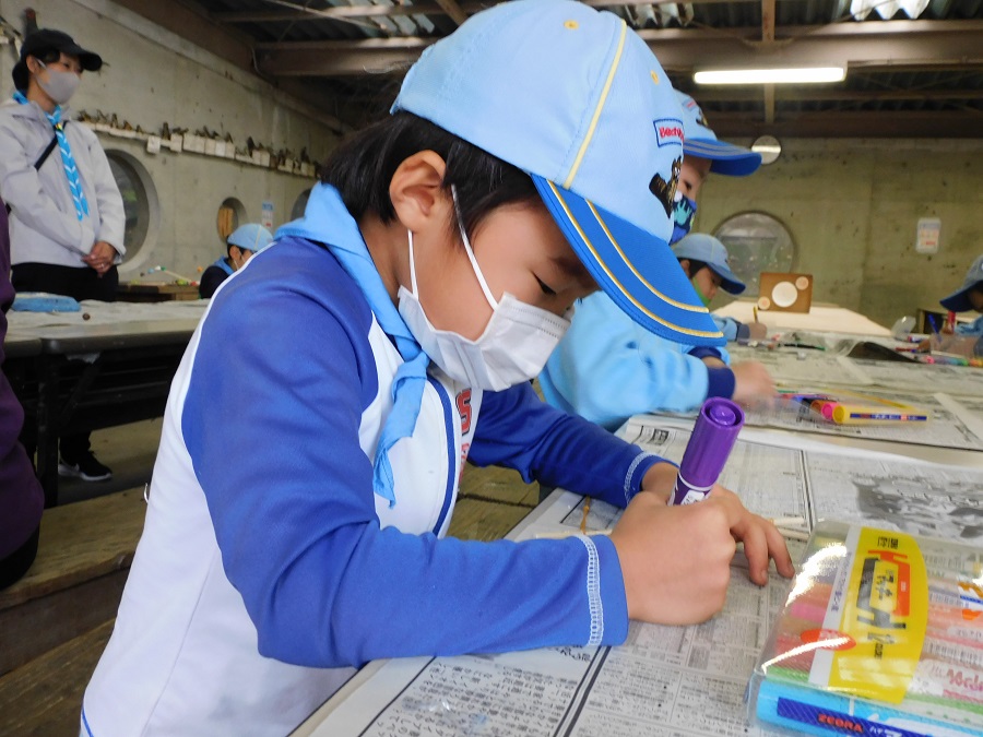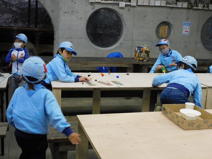 割り箸や段ボール台紙に色を塗ったり絵を描いたり。