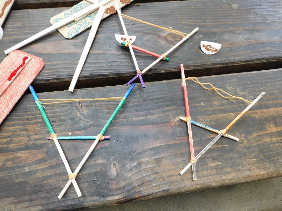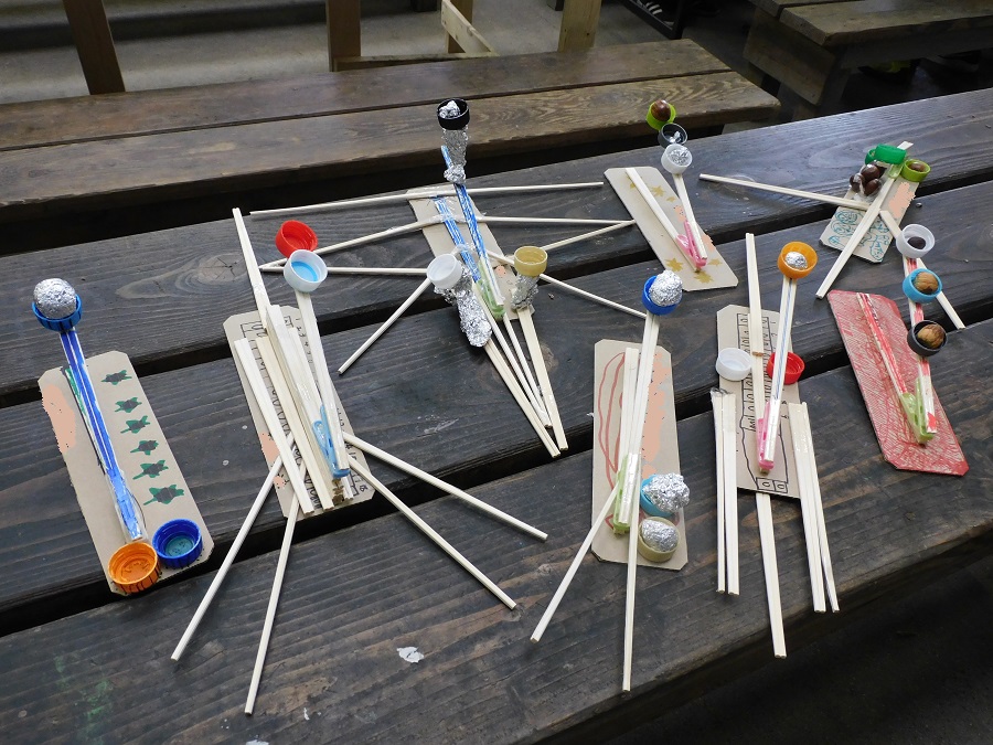まずは割り箸とペットボトルのキャプを使って『ミニカタパルト』作りです。