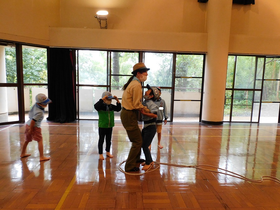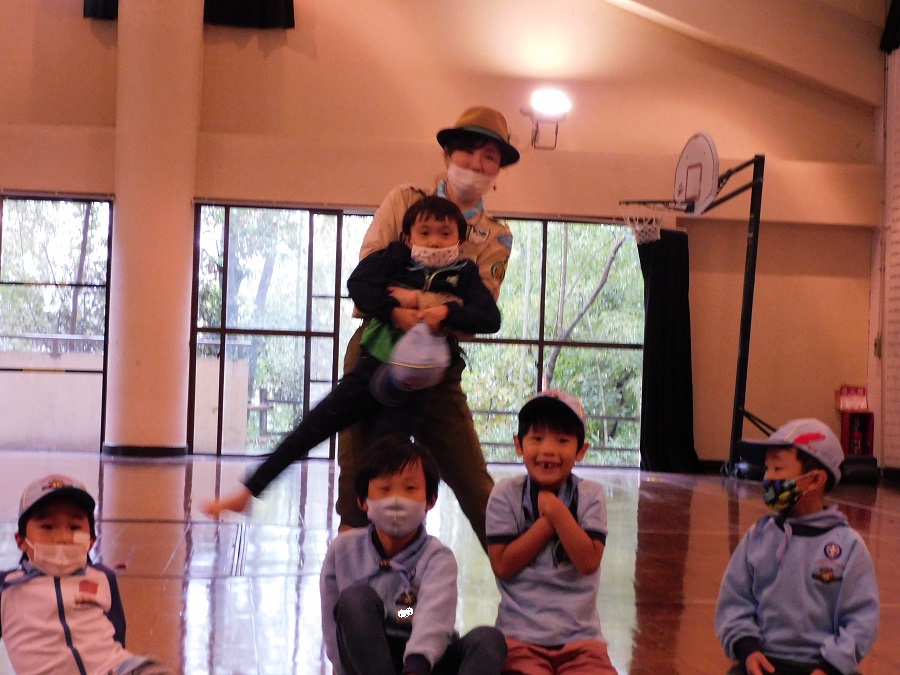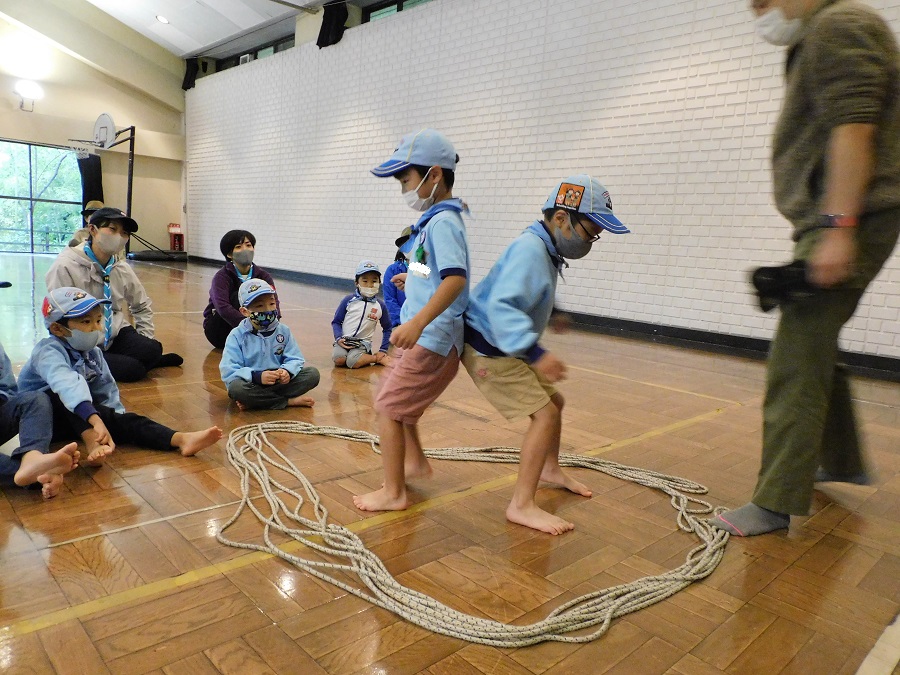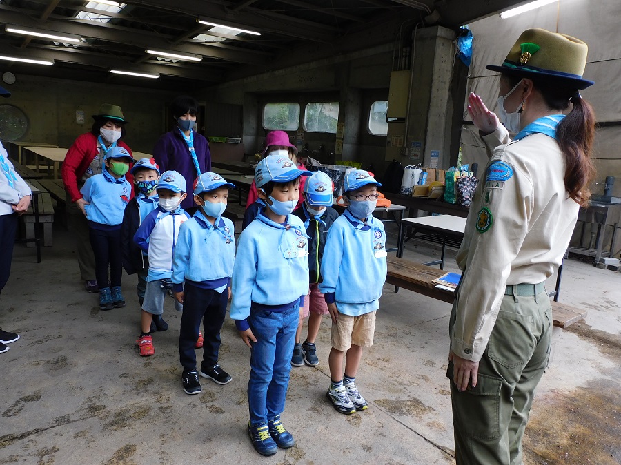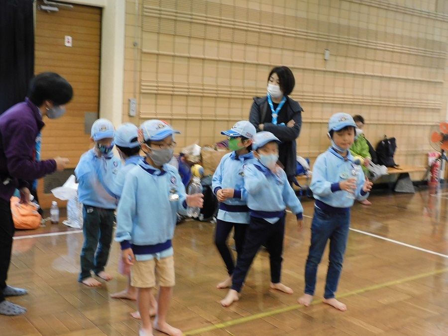 『ちかい』と『おきて』、『連盟歌』と一緒に正しい姿勢を復習します。
