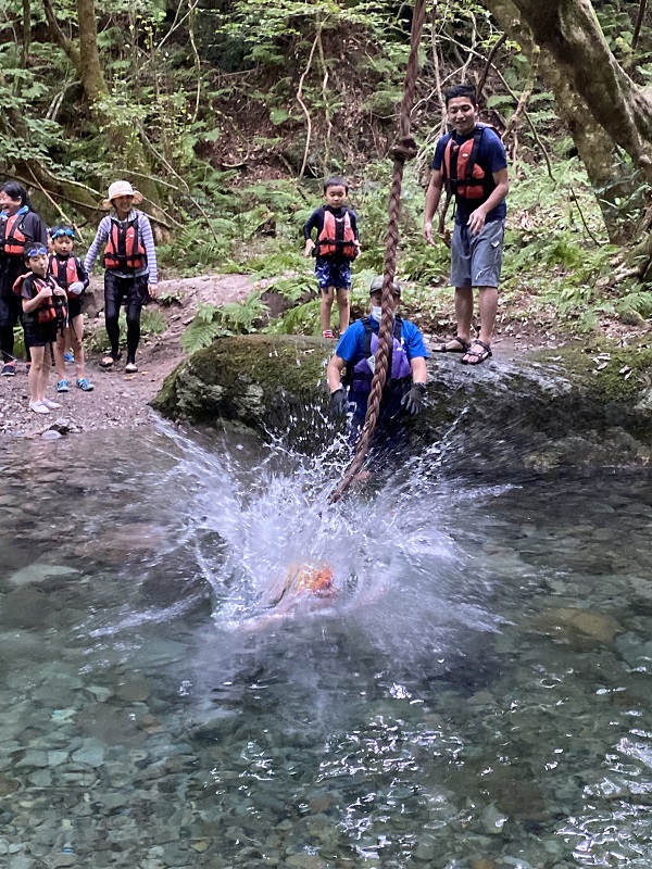 ロープを離せず戻ってきてしまうスカウトもいましたが、全員勇気を振り絞って飛び込むことが出来ました!!