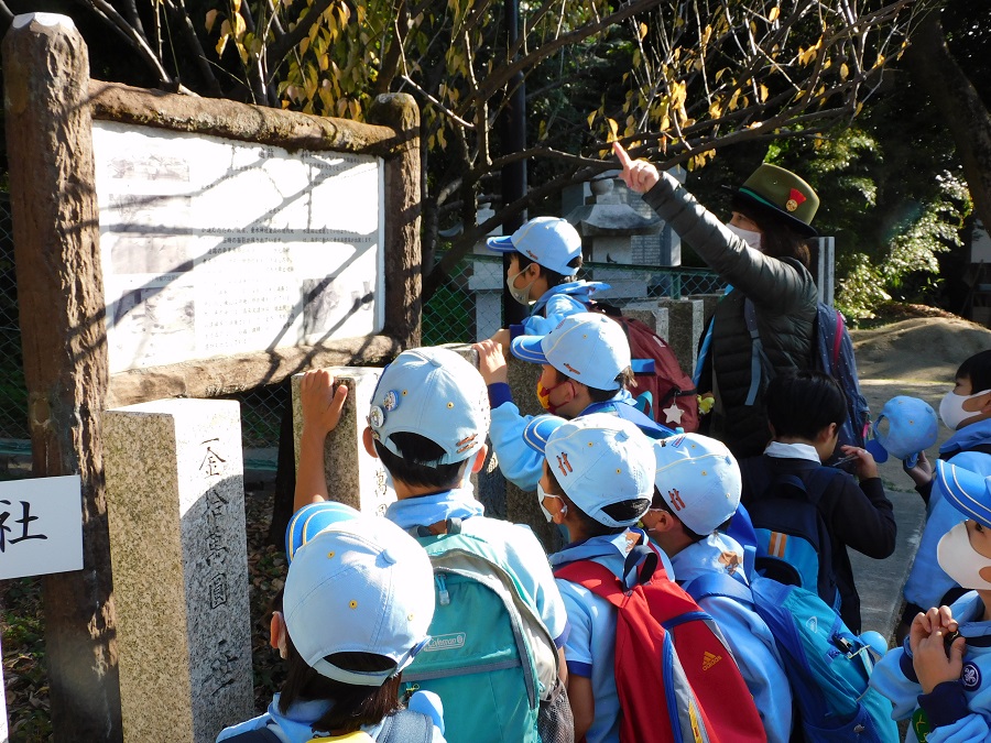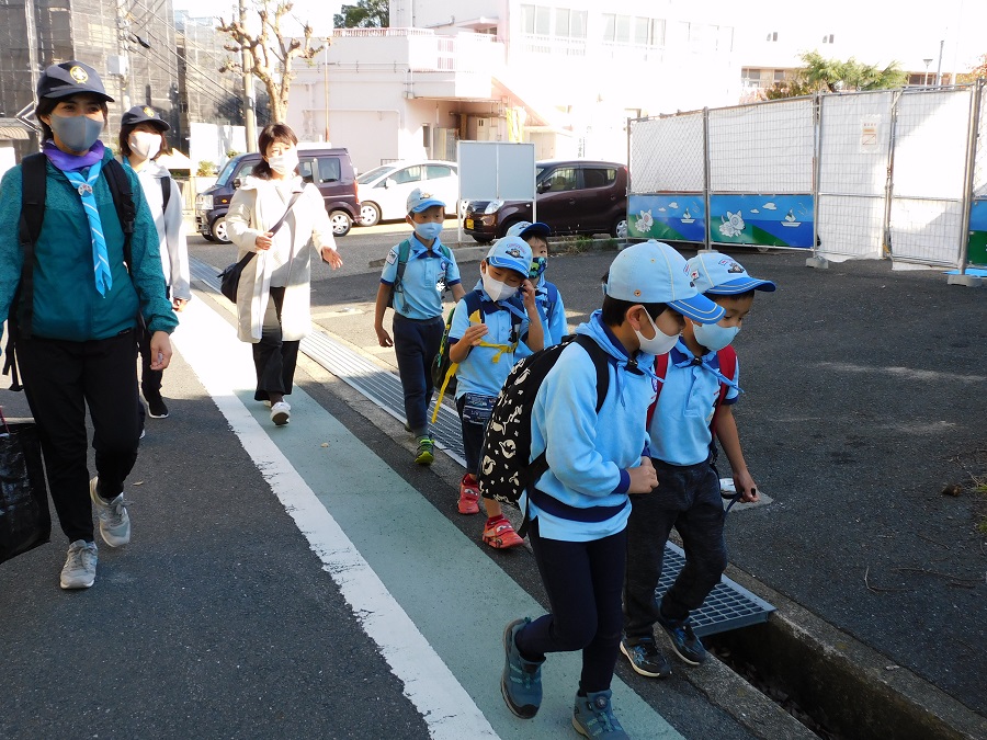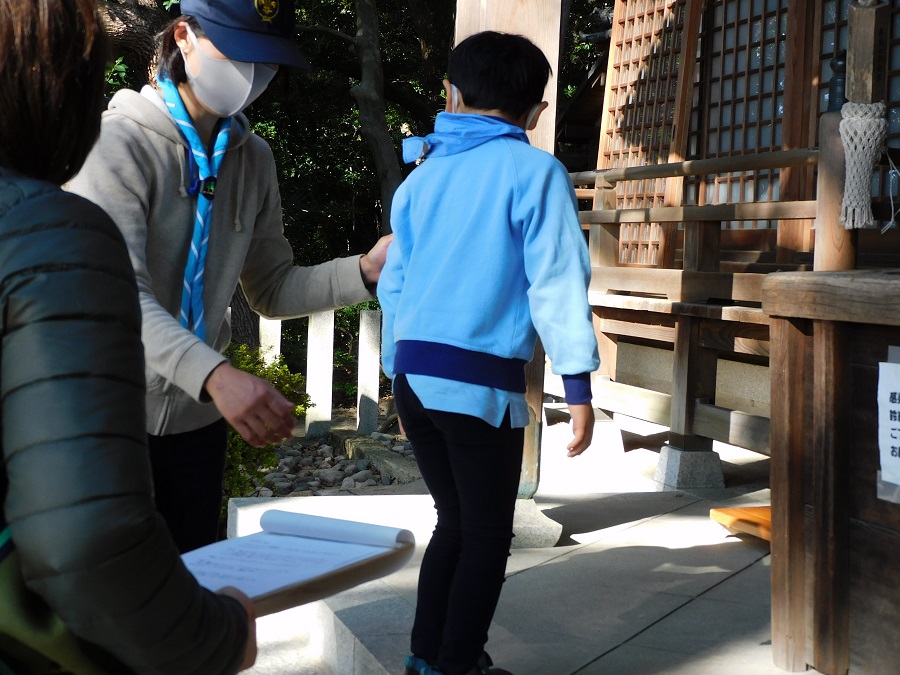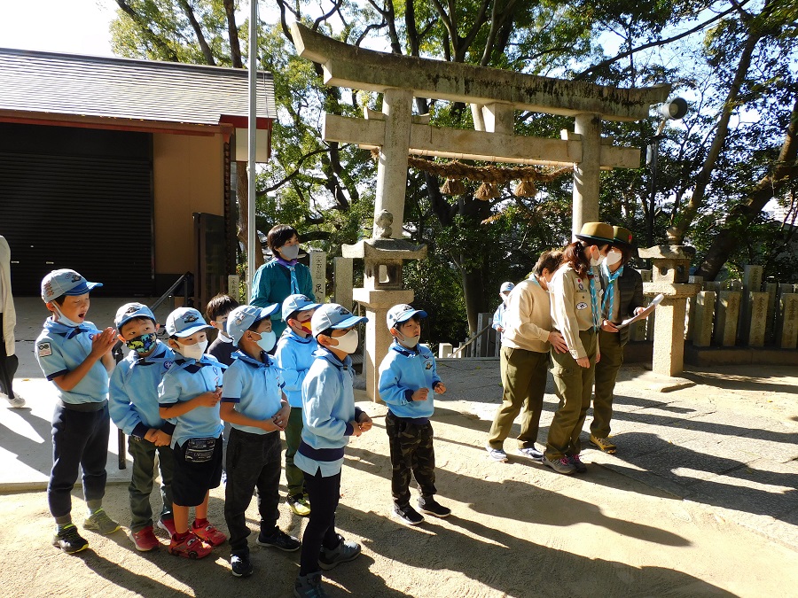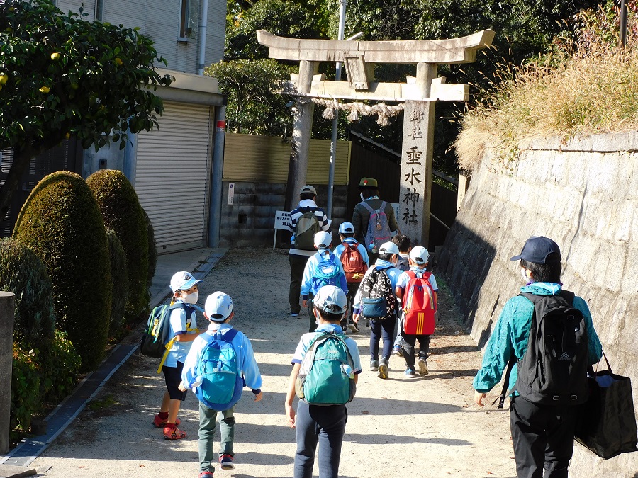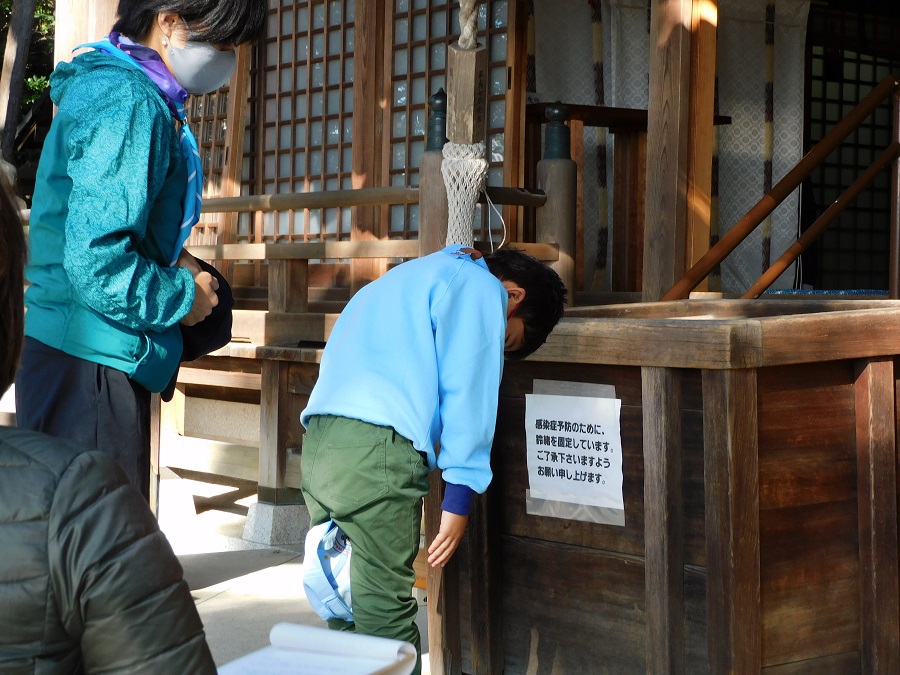 今日の活動は歩いて神社にお参りです。