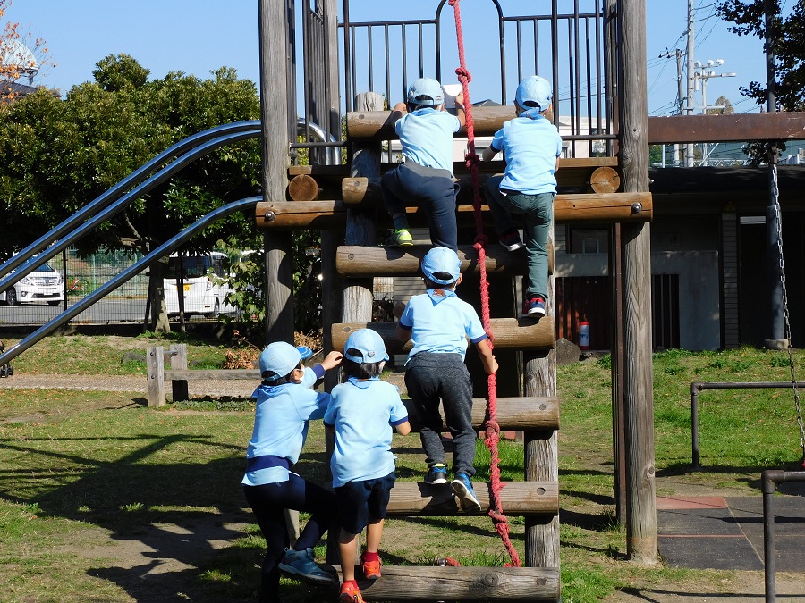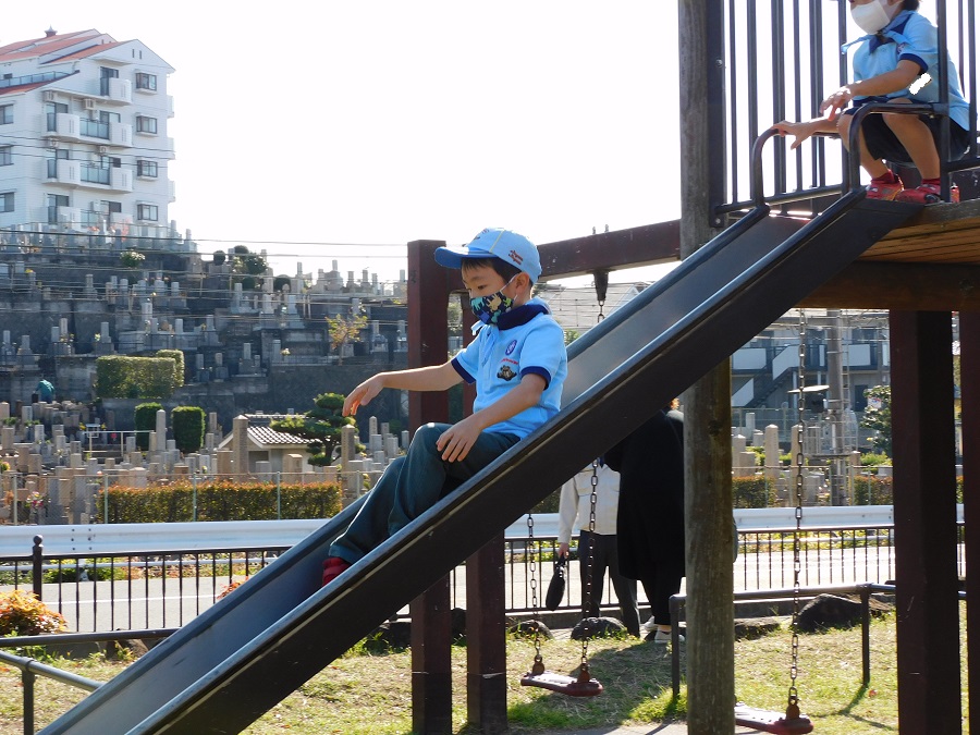 まずは線路側の柵に沿い、滑り台に群がるぞう班のスカウト達。