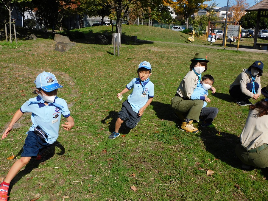 宝探しの後は、昔ながらの遊び『ハンカチ落とし』です。