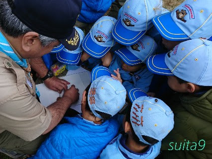 教えてもらうのに群がるスカウトたち