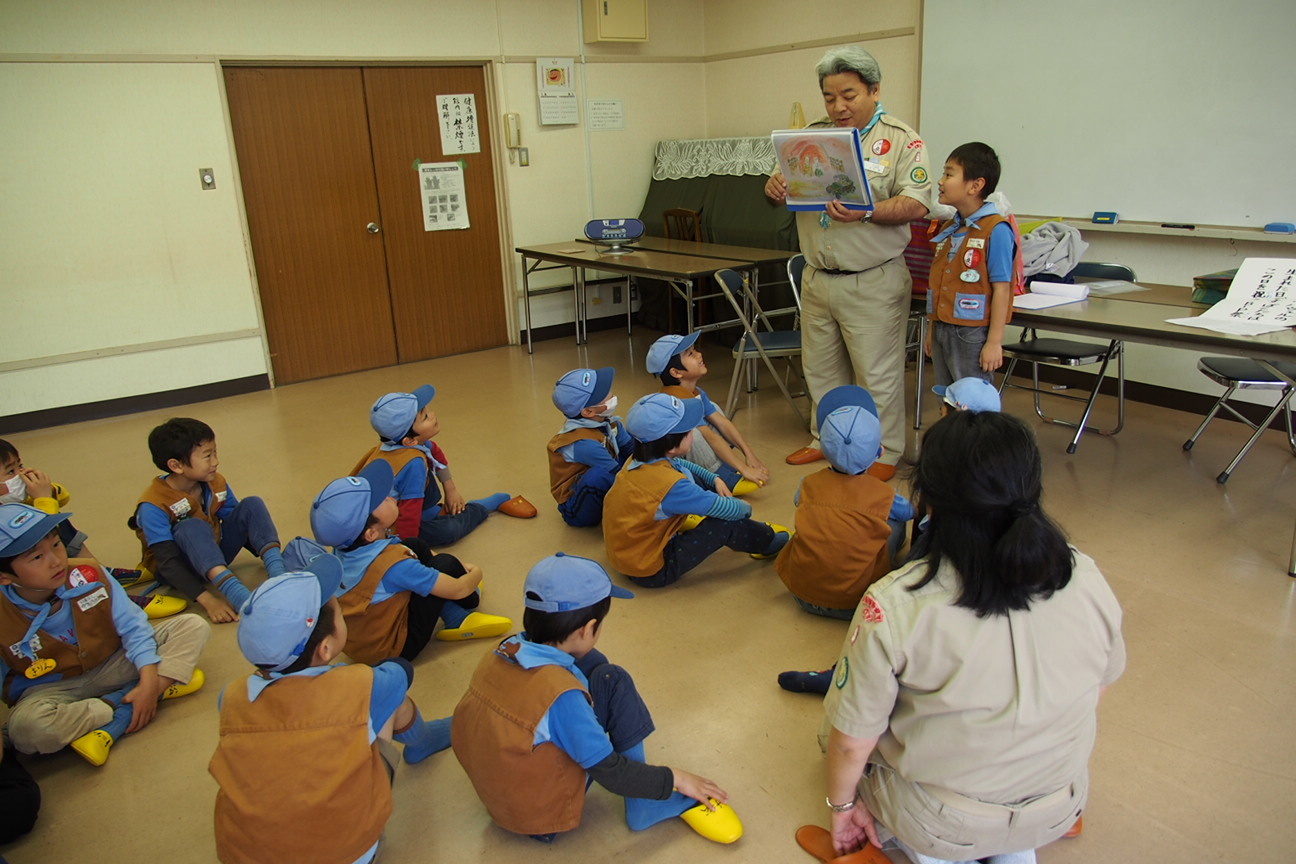 ビーバーの活動が終わったあとに、ビッグビーバーは来年度カブスカウトに上進するので、カブ隊の隊長からカブ隊の基本を色々教えていただきました(これをリスの道と呼ぶそうです)。