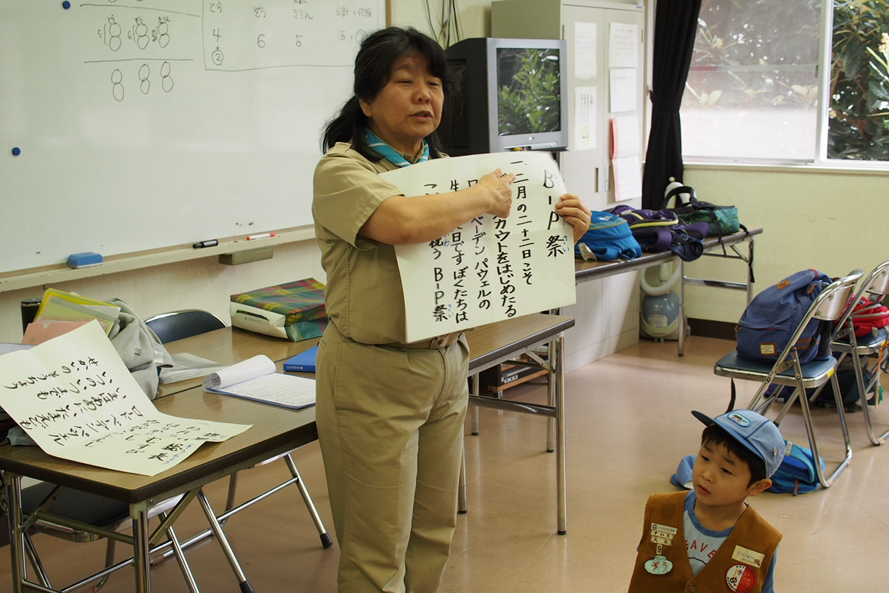 B-Pの物語の紙芝居でベーデン・パウエルがボーイスカウトを創設した経緯をかいつまんで理解します。