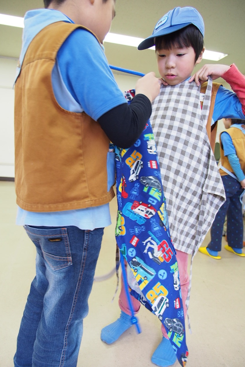 エプロンをして気合が入って・・・いますか? がんばってね!