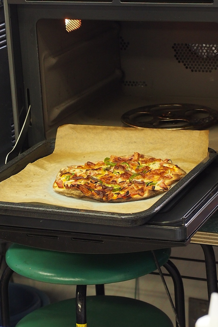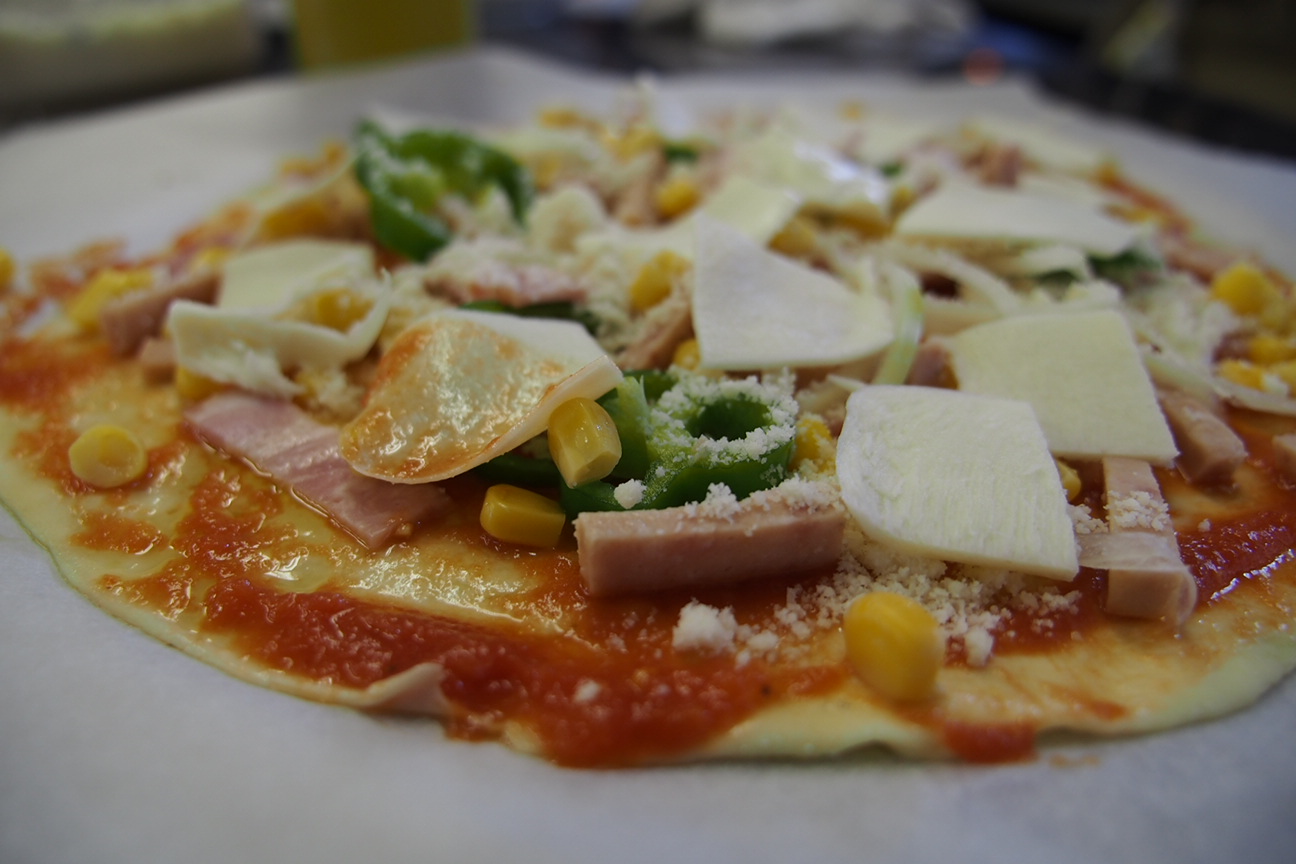 上手にトッピングできましたよ。あとは焼くだけ。