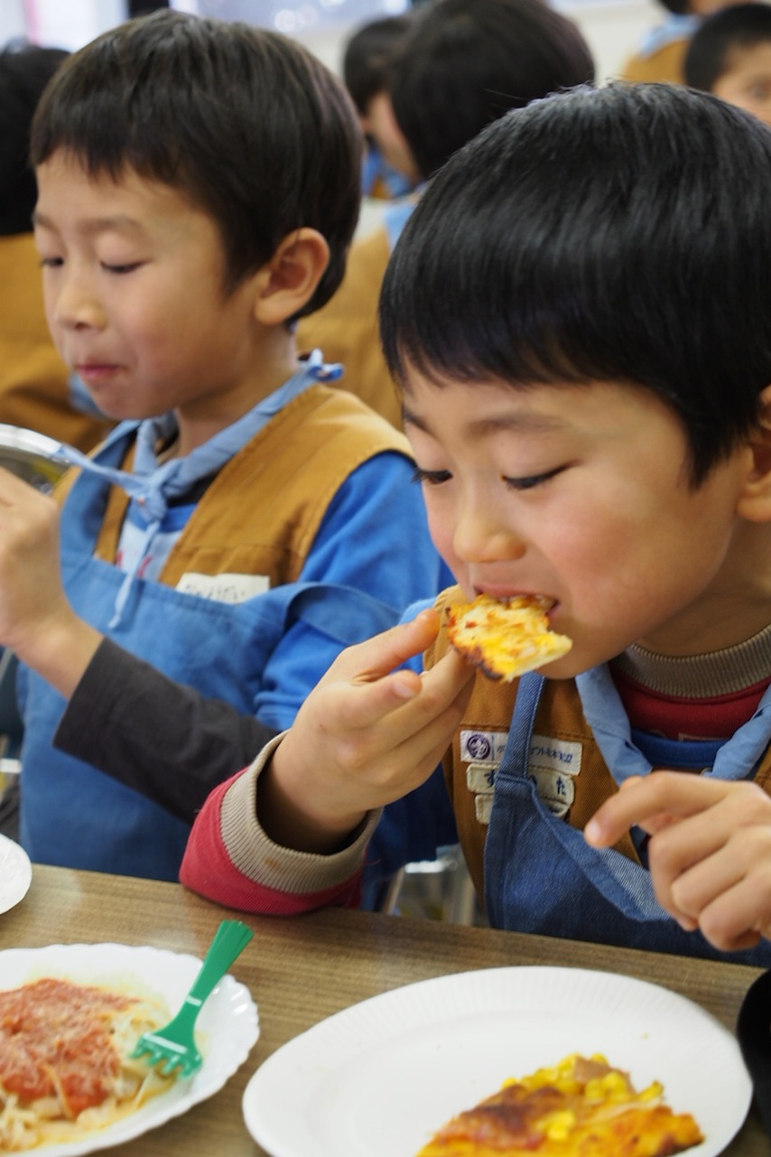 みんなで焼きたてをいただきました。味はこの笑顔が物語っていますね。