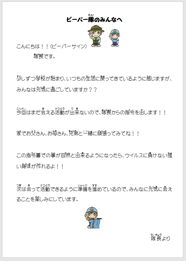 また【隊長からの手紙】です。