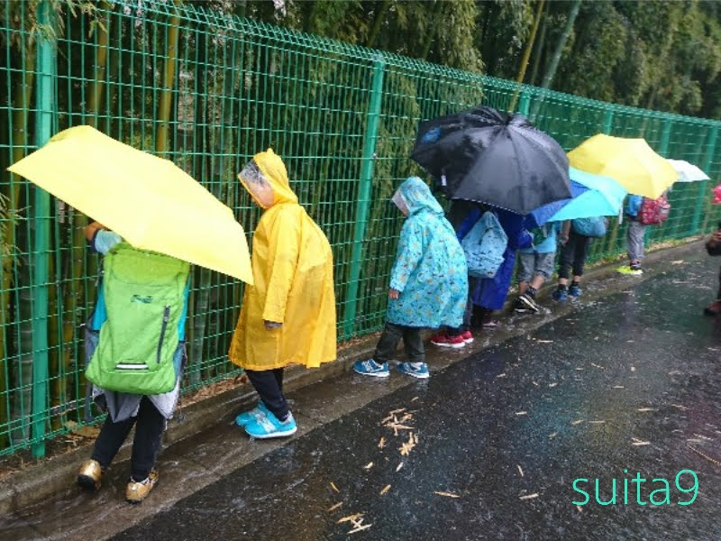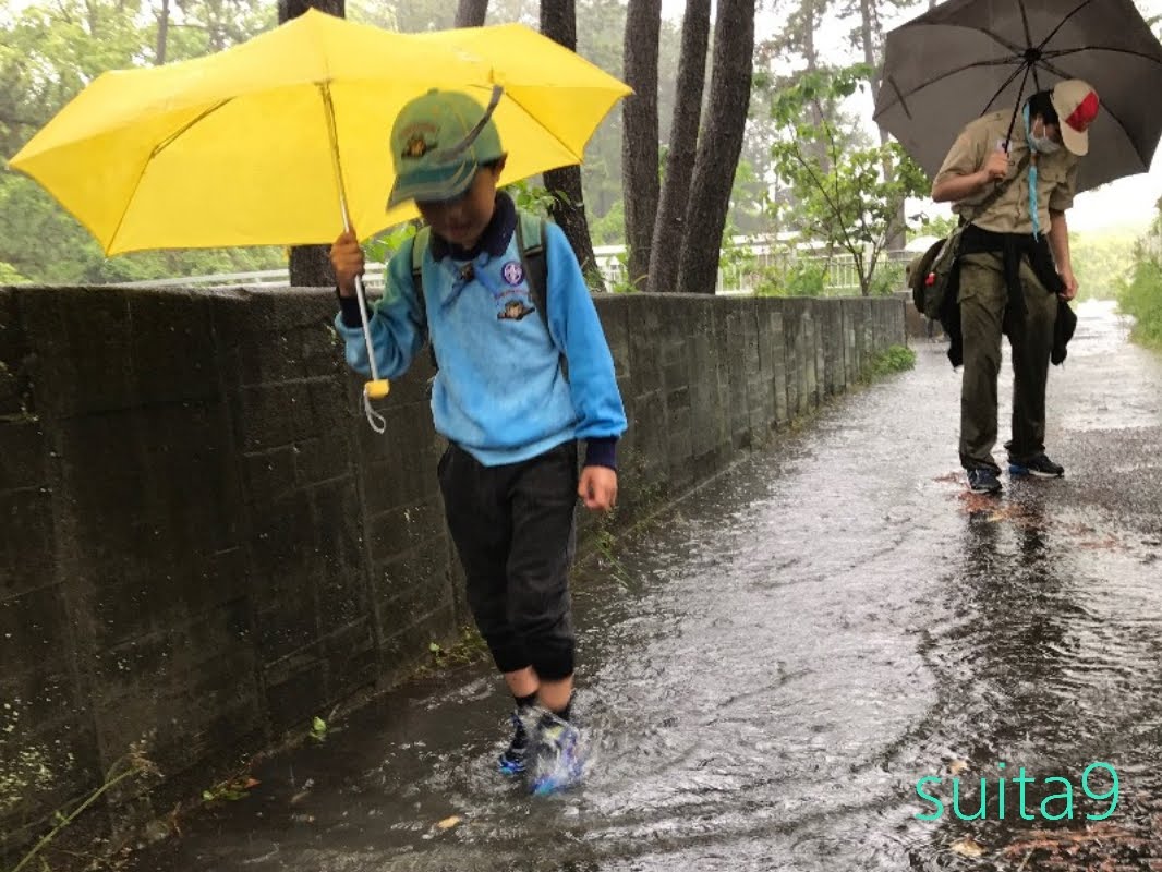 傘もカッパも関係なくびしょ濡れになったスカウトたち