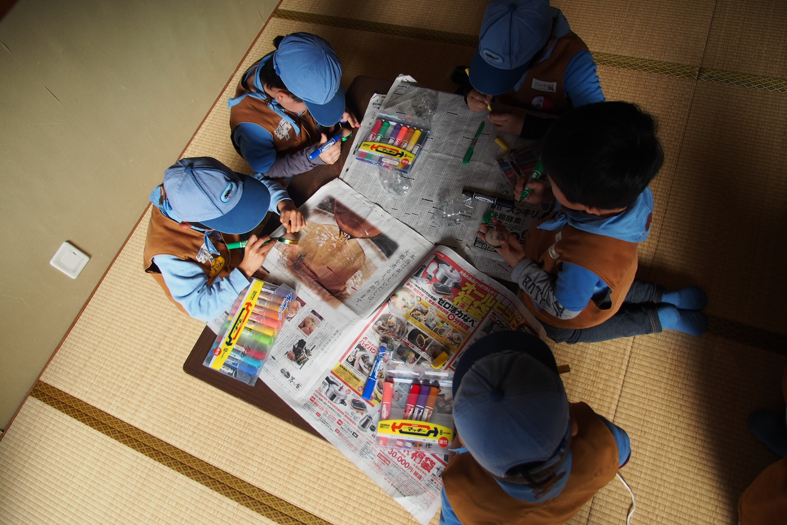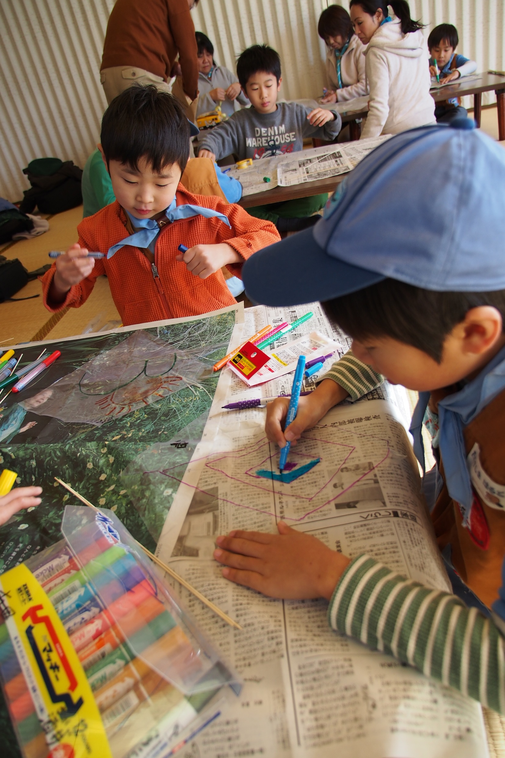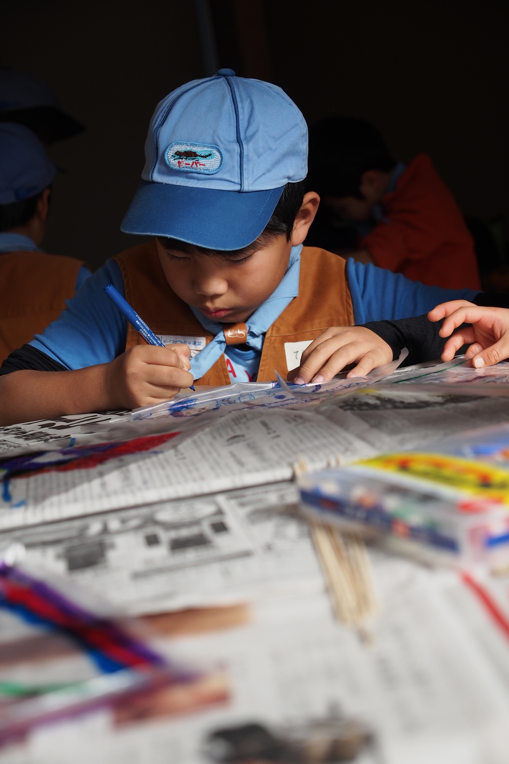 スカウトは工作やお絵かきが大好きです。夢中でペンを走らせます。