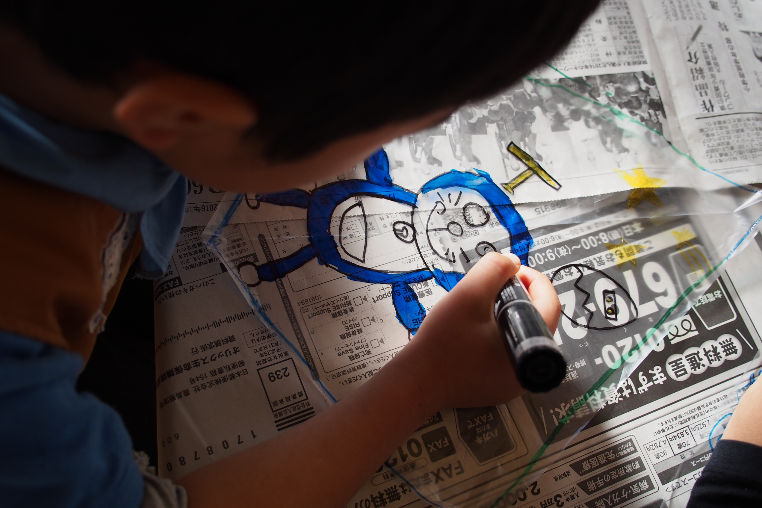 自分の凧に絵を書いてカスタマイズします。