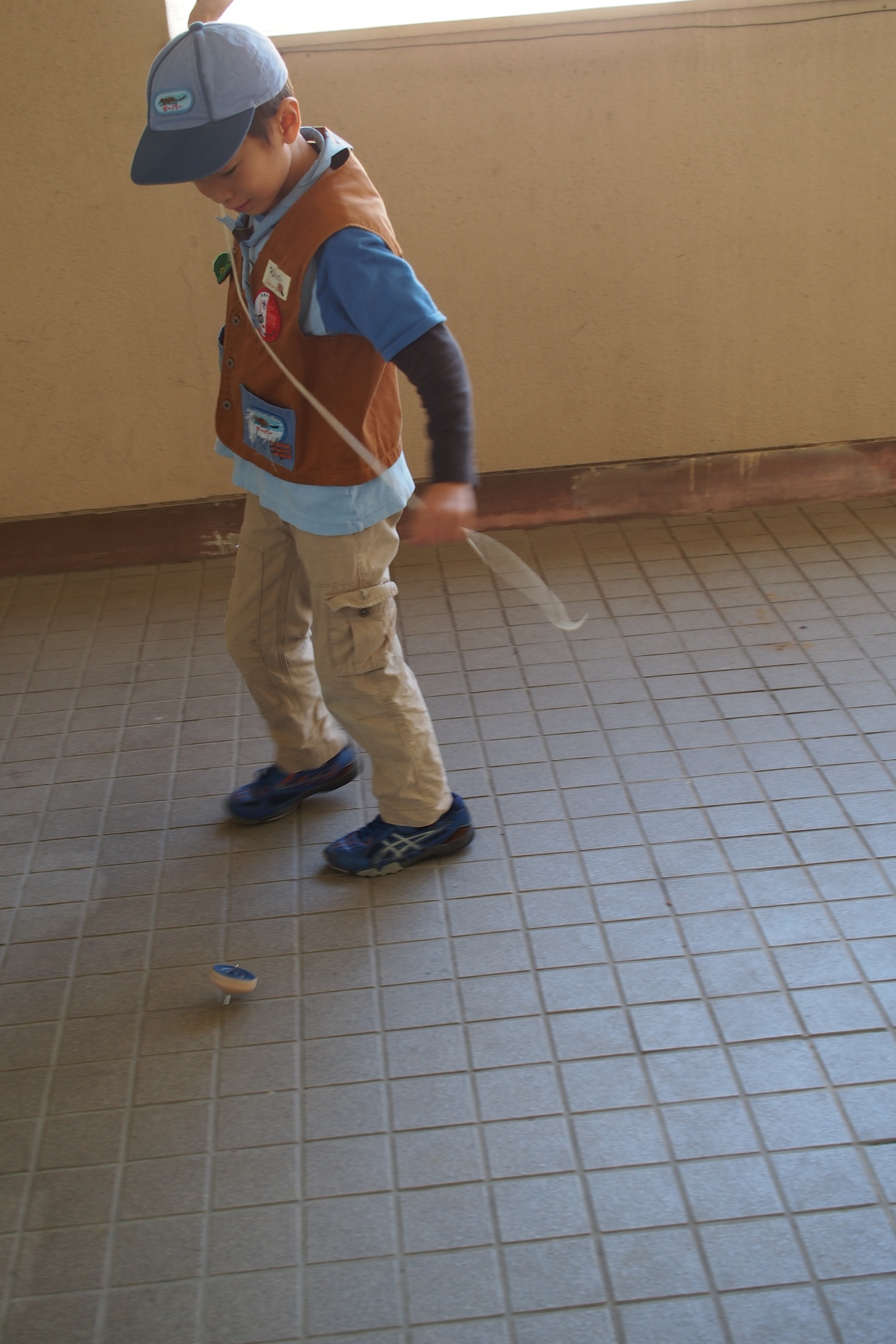 食後は先ほど作ったコマを回してみました。