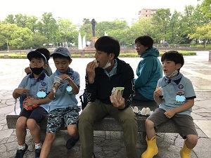 朝早くから保護者さんが用意してくれたビーバー弁当(中身の具は自由なおにぎり)を美味しくいただきます。