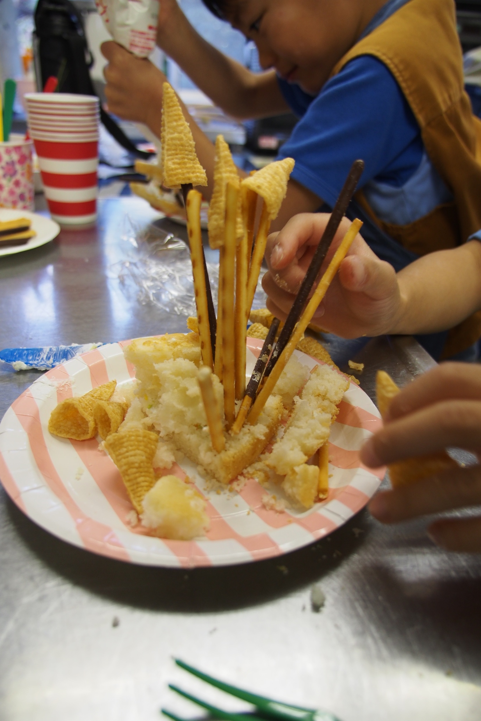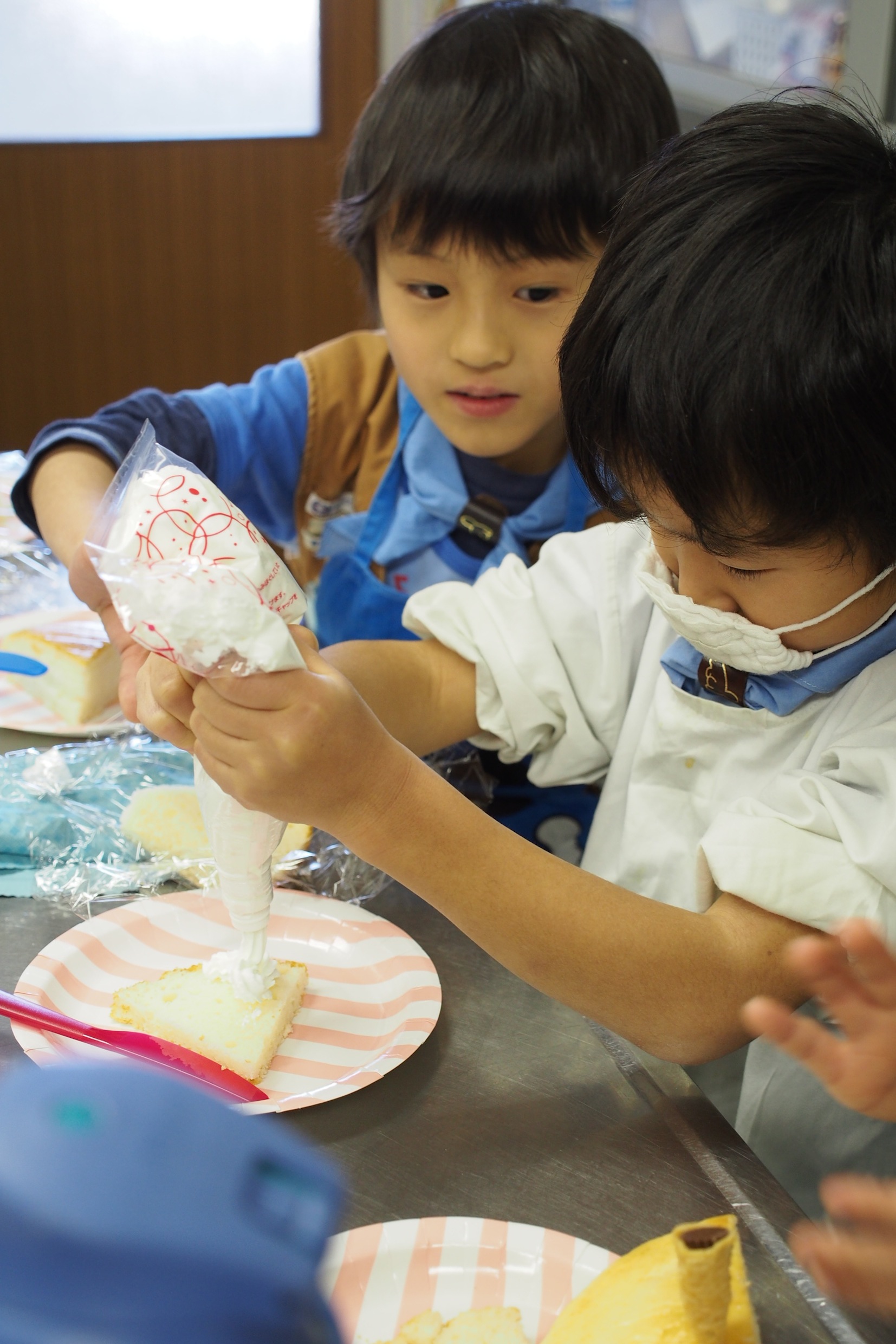 隊員のお母さん手作りのスポンジに各々デコレーションしていきます。