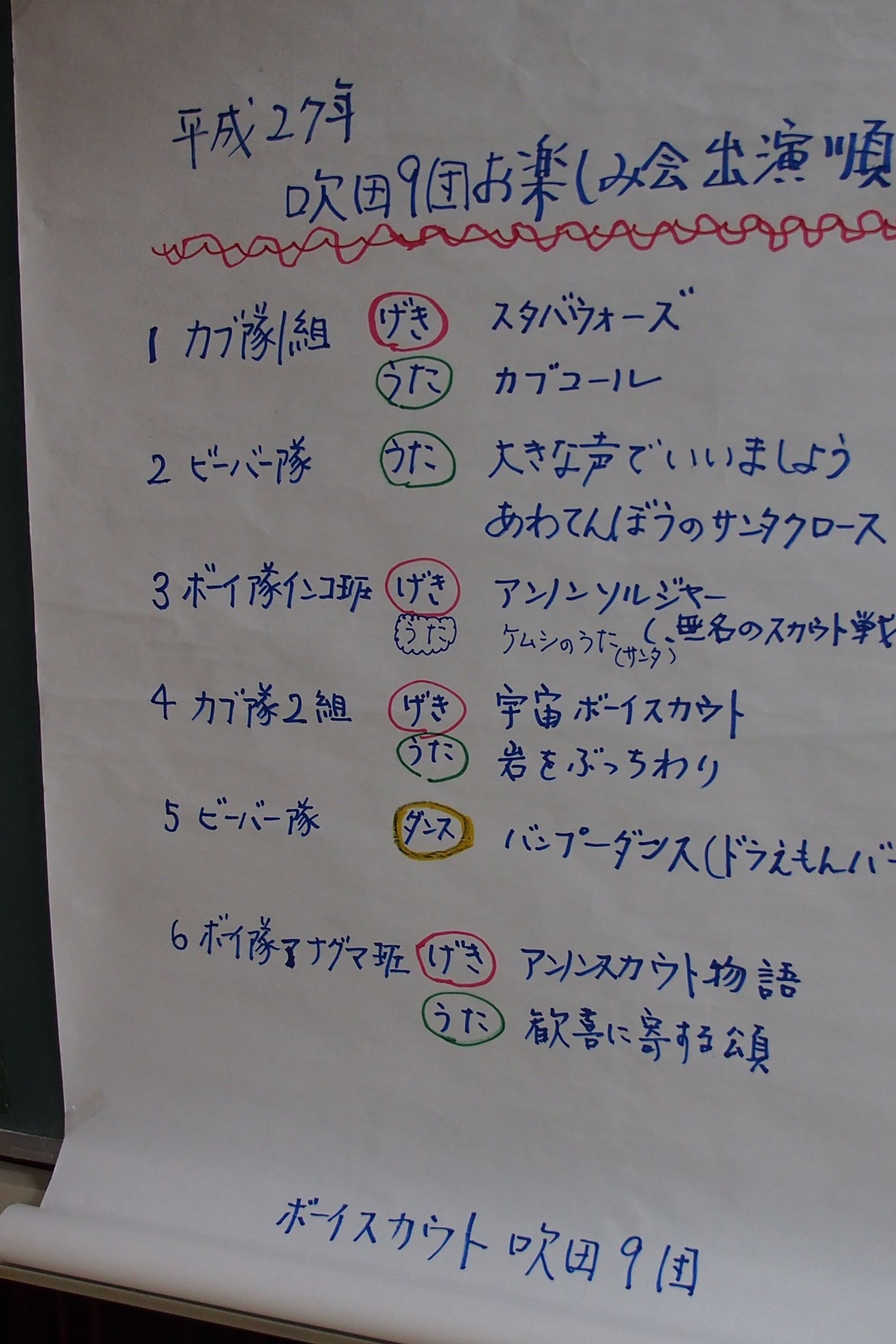 ビーバー隊は2番めと5番目に出番があります。