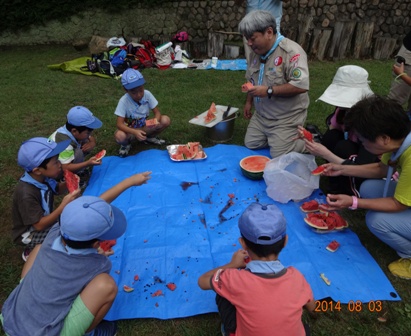 雨がやみました。9団ビーバー隊の鉄壁のプログラム 夏場所です。