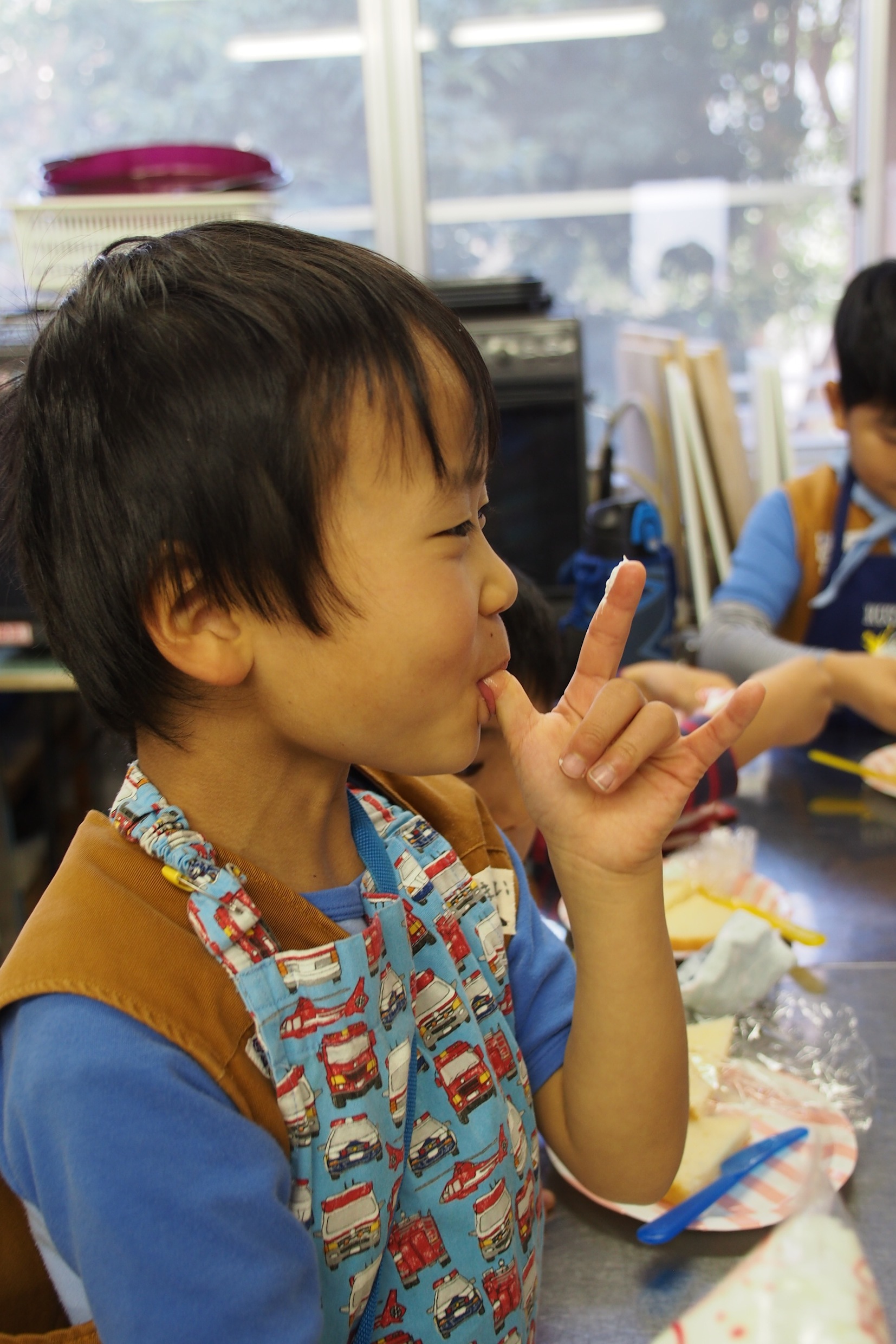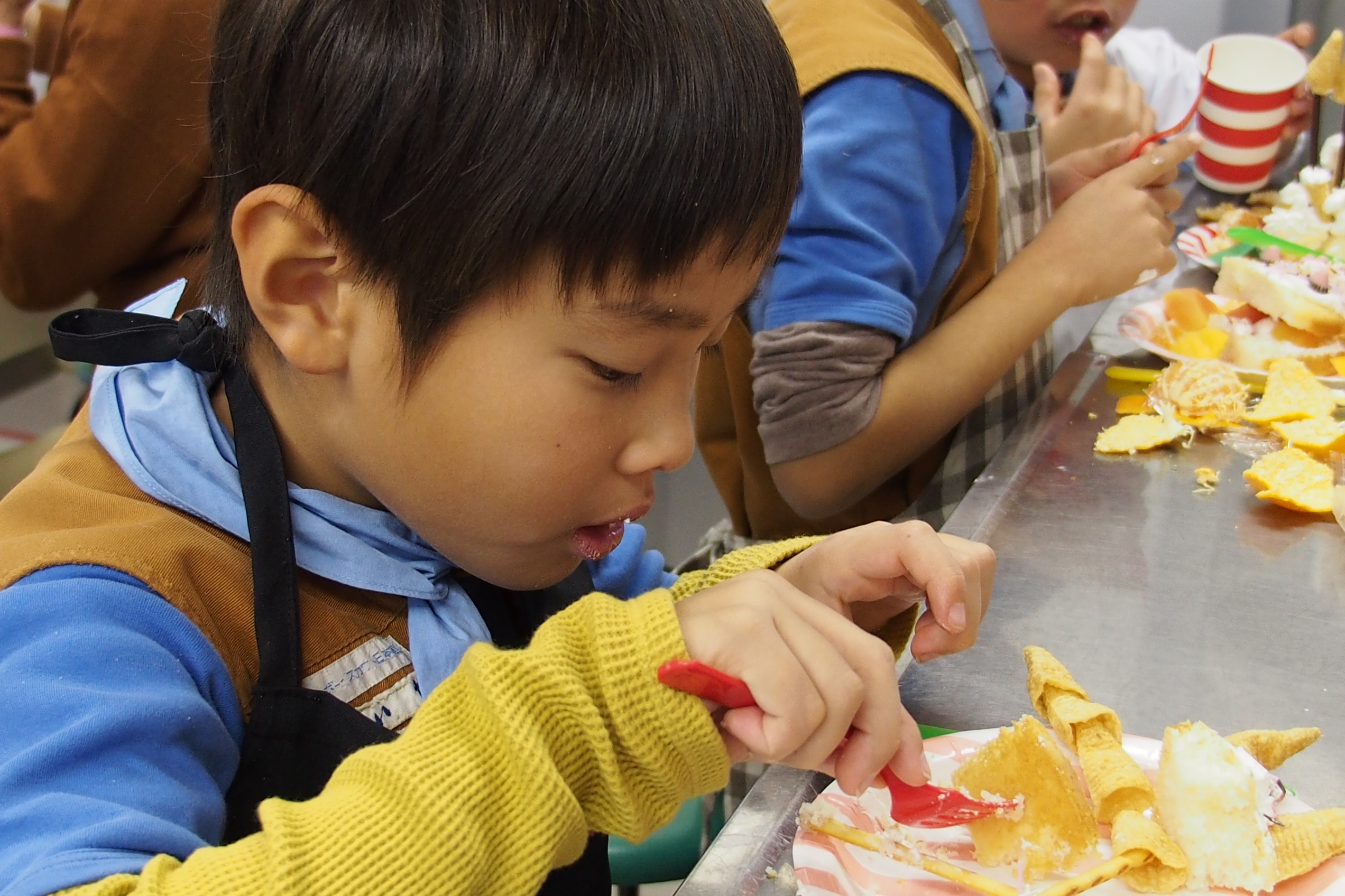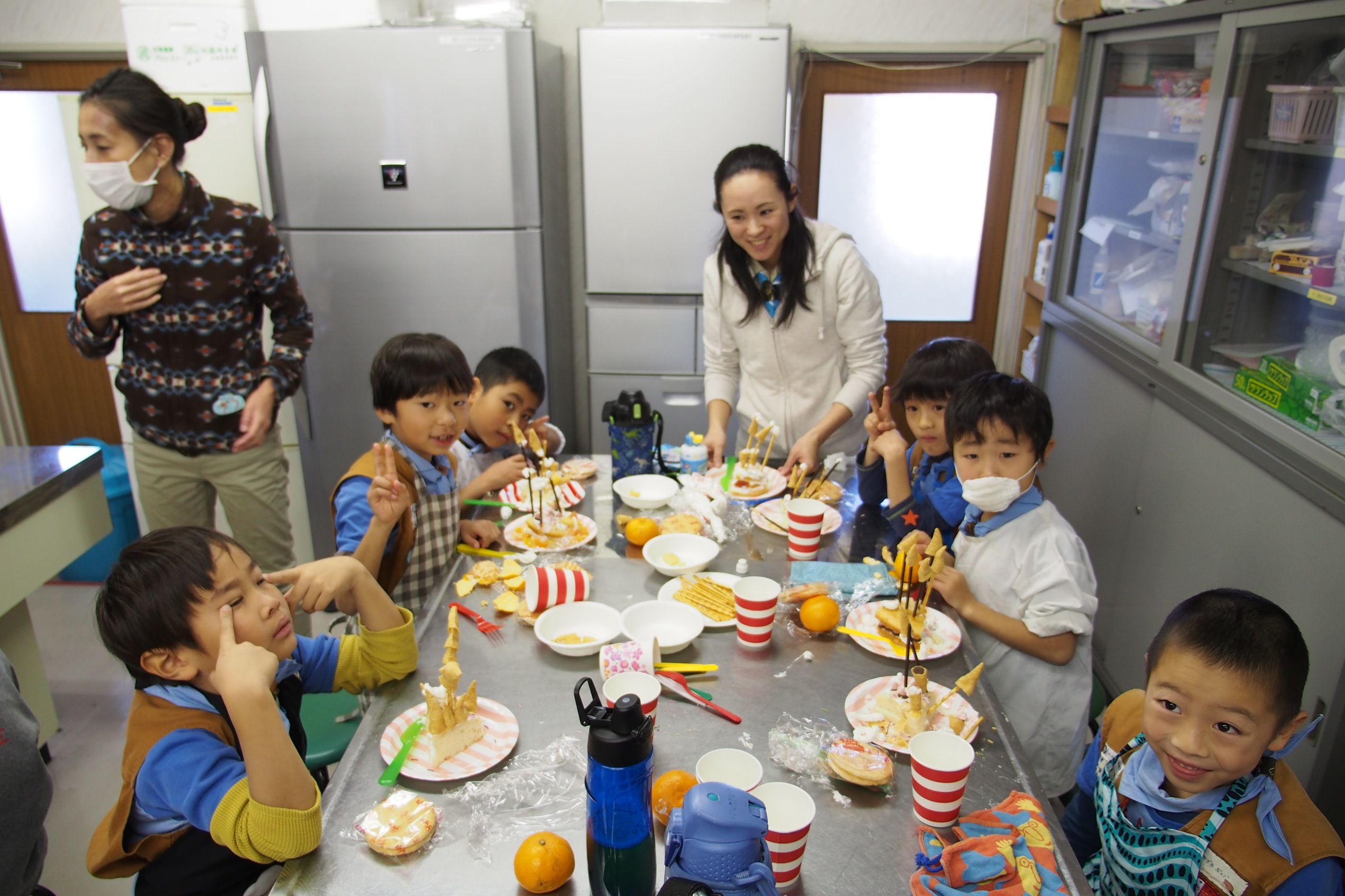 隊員のお母さん手作りのスポンジに各々デコレーションしていきます。