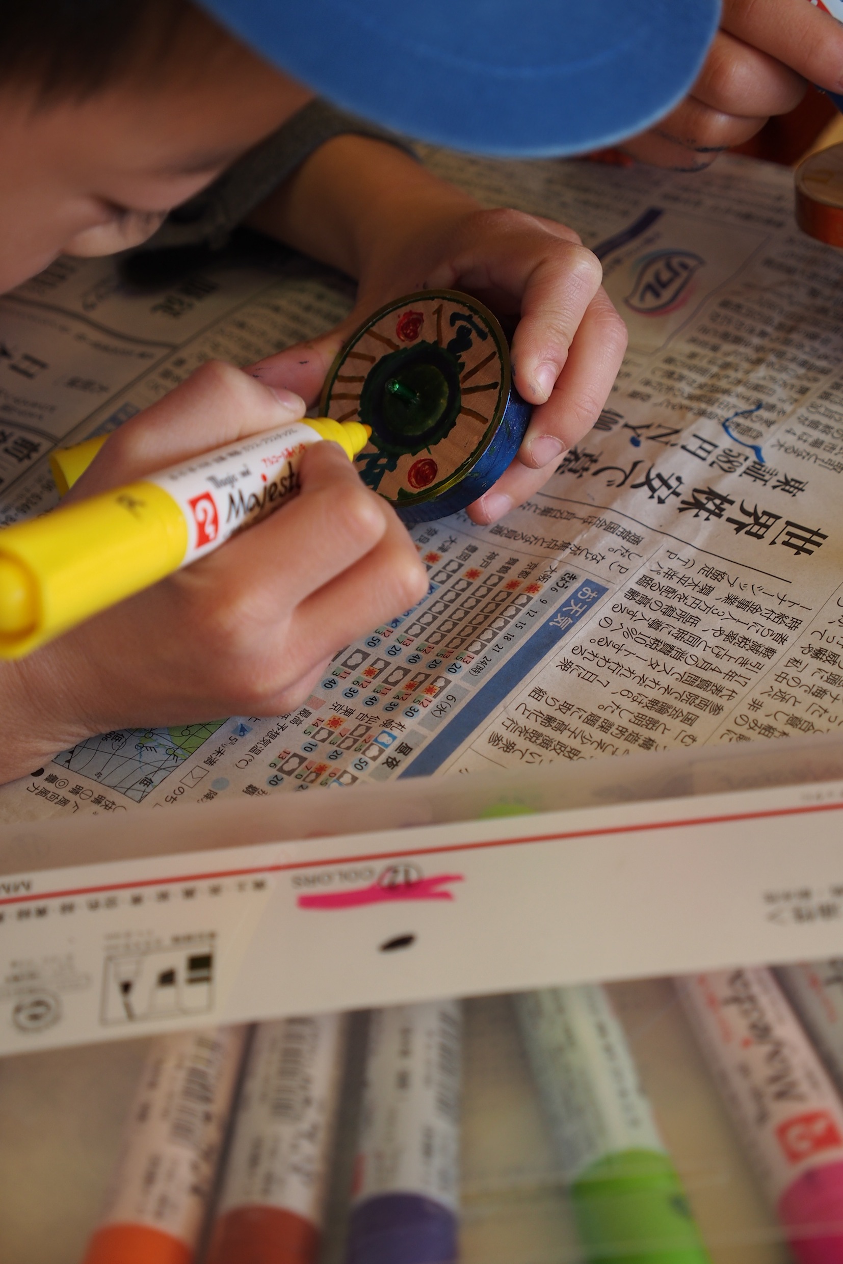 凧が完成したら、次はお正月遊びの王様 こま作りです。